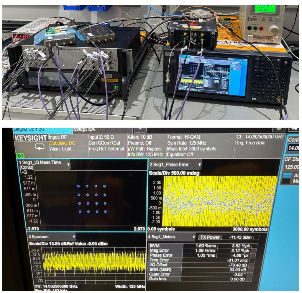We were asked to deliver a solution that would enable the full ground testing of a space payload with 18 RF ports operating between 10 and 30 GHz. The measurements of Gain Flatness, Group Delay, Isolation, Return Loss, EVM Quality, Stability and Phase Noise were required.