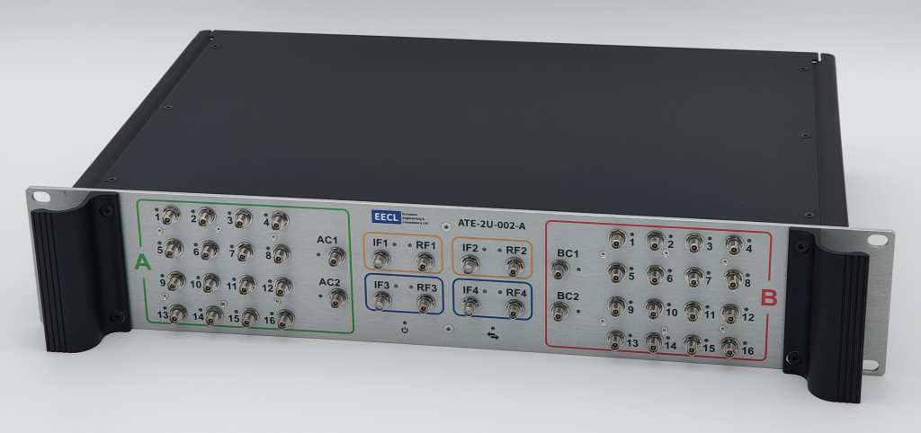 Our rack-mounted systems address this challenge by integrating advanced RF switch matrices and frequency conversion stages, enabling a single low-frequency source and receiver to characterise high port-count DUTs efficiently. By intelligently combining switching and frequency translation, we significantly reduce overall test equipment requirements while maintaining measurement integrity.